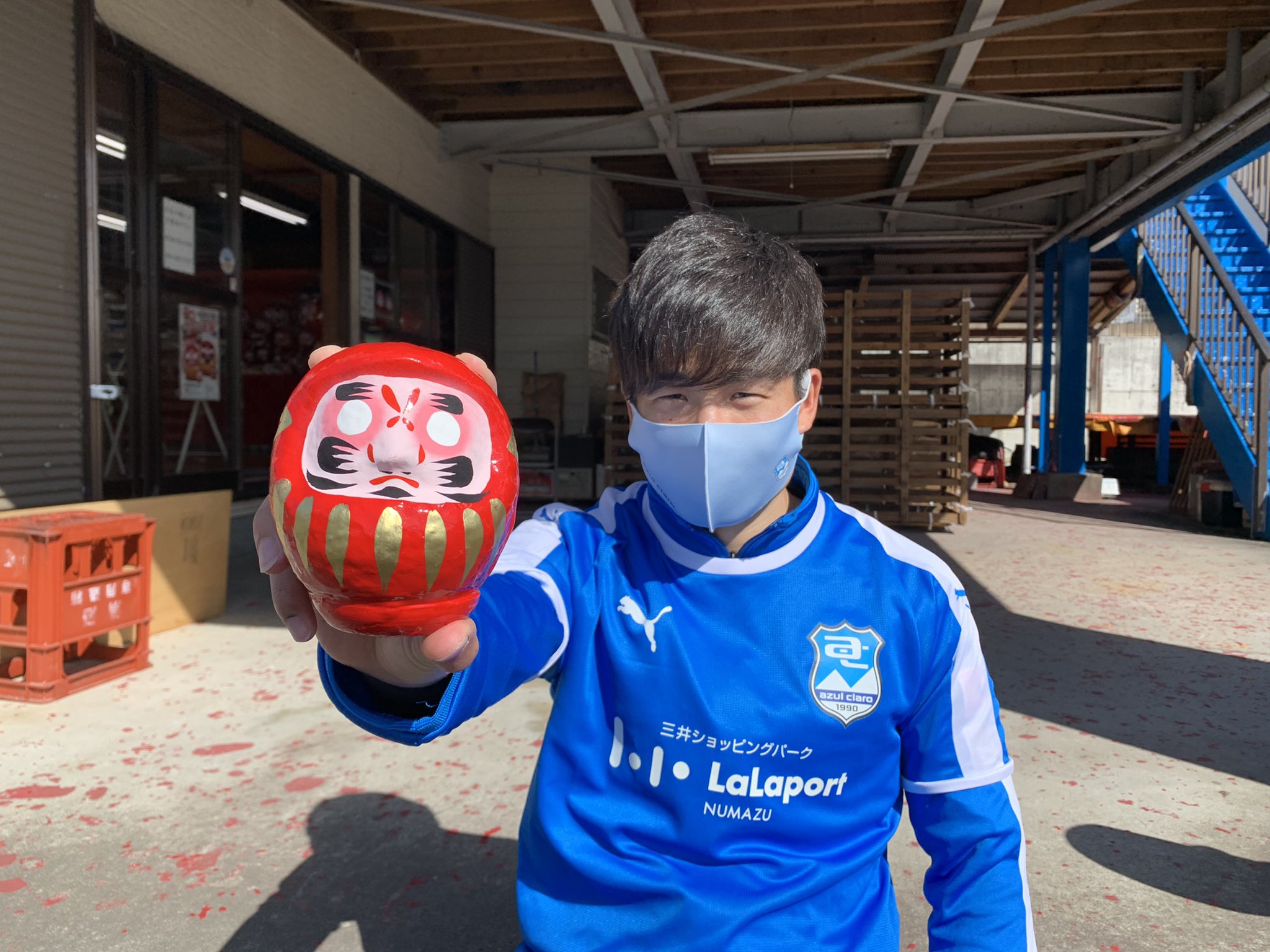 ちなみにダルマの色が赤色のまま(アスルクラロ沼津の青色ではない)なのも、地元のお祭りの伝統を大切にしよう、という考えからだそう。