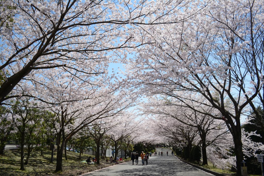 |東名沼津インター北西にある愛鷹広域公園は、自然環境に恵まれ市内外から多くの人たちが訪れ、四季折々の景観を楽しみます。特に4月になると駐車場の西から県営愛鷹球場まで続く道路沿いの桜並木が満開となり、訪れる多くの見物客の目を楽しませます。
