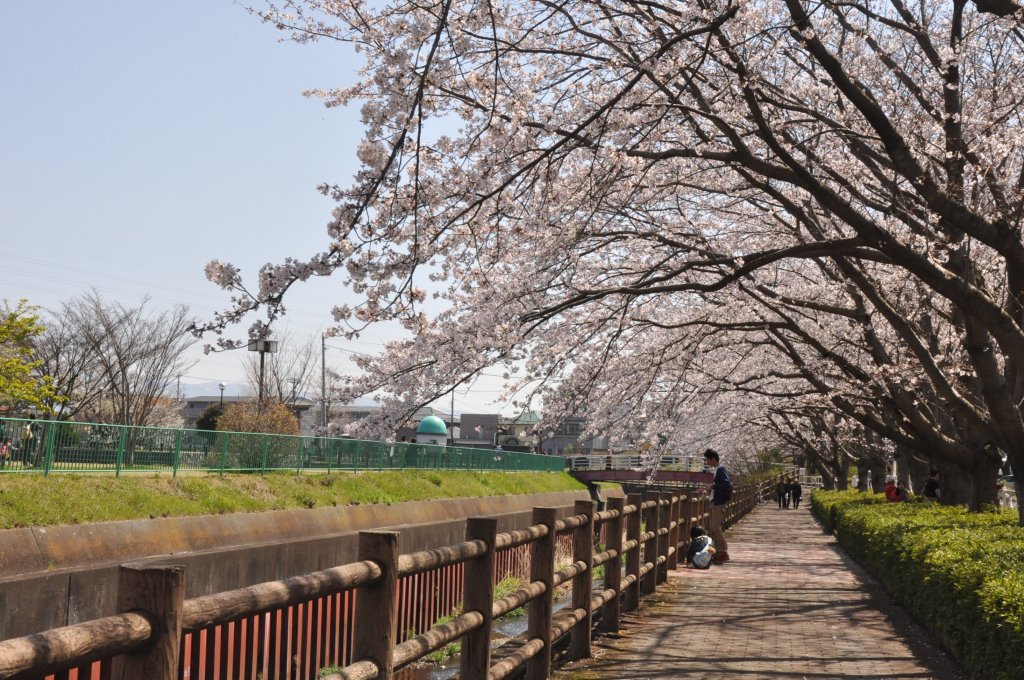 国道1号線バイパスと、並行する沼川沿いの全長約5kmにわたって続く桜並木。