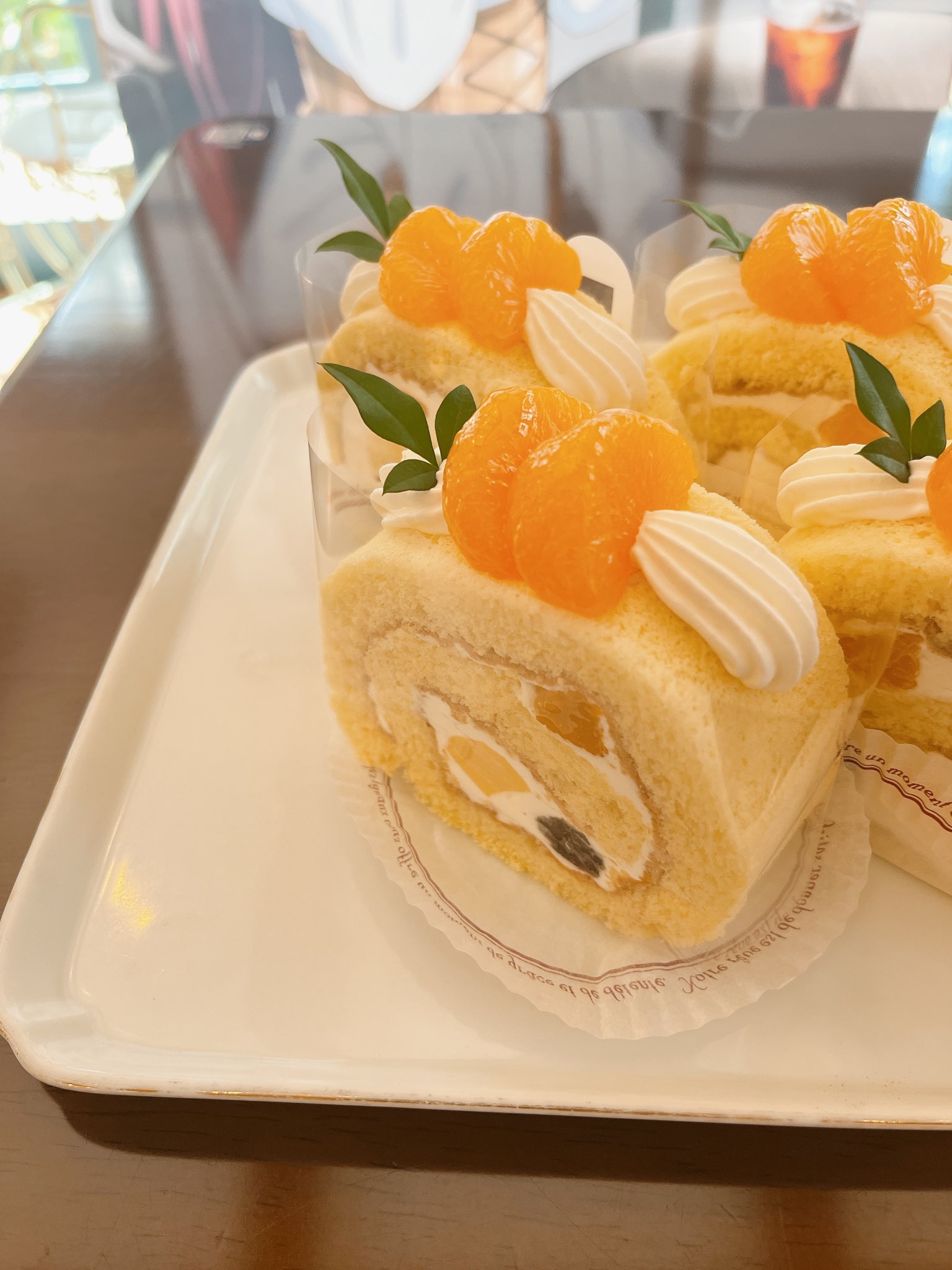 ロールケーキの中には雅心苑さん特製の小倉あんとプリン、トッピングにはみかんです!