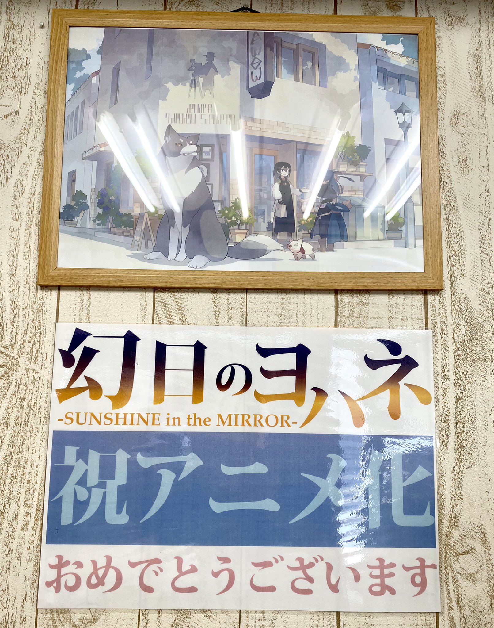 商店街の各地にアニメ化決定を喜ぶ張り紙がたくさん貼られているようです。