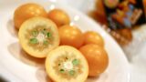 半分に割ってみると、中にはまぶしいくらいの鮮やかなオレンジ色の果肉!