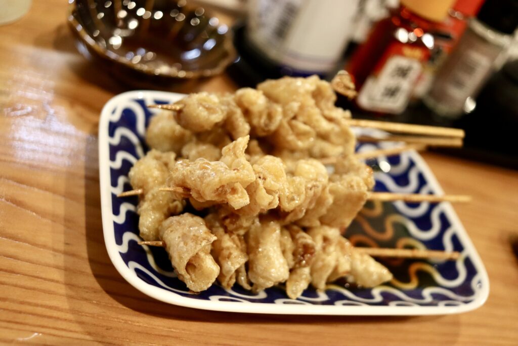 表面はサクッと、中は弾力の残る鶏皮の揚げ串、さらりとした甘辛ダレが鶏皮との相性もピッタリ!