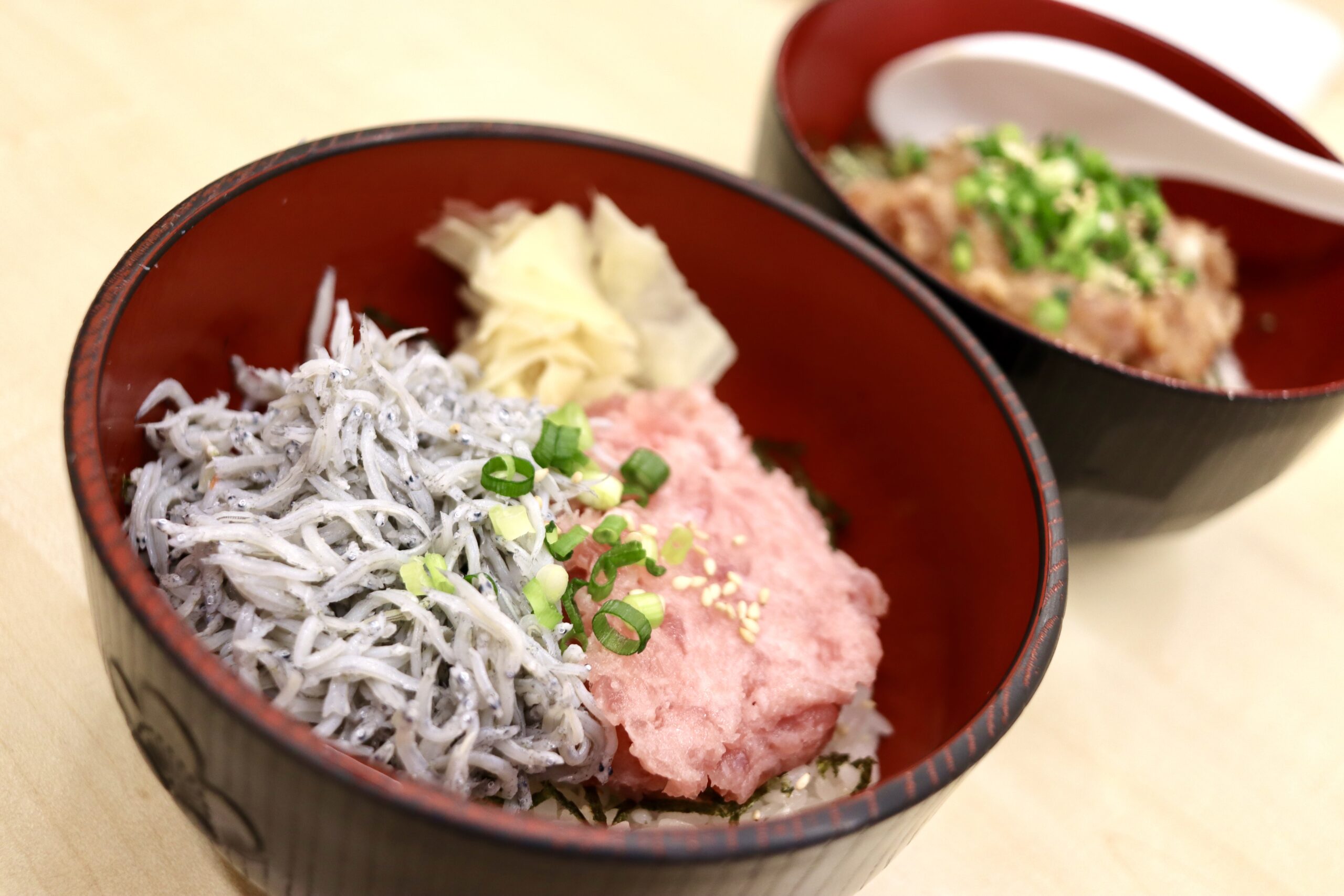 こちらは一緒に行った妻まぐろちゃんのオーダー、まぐろすき身と釜揚げしらすの「2色丼」。