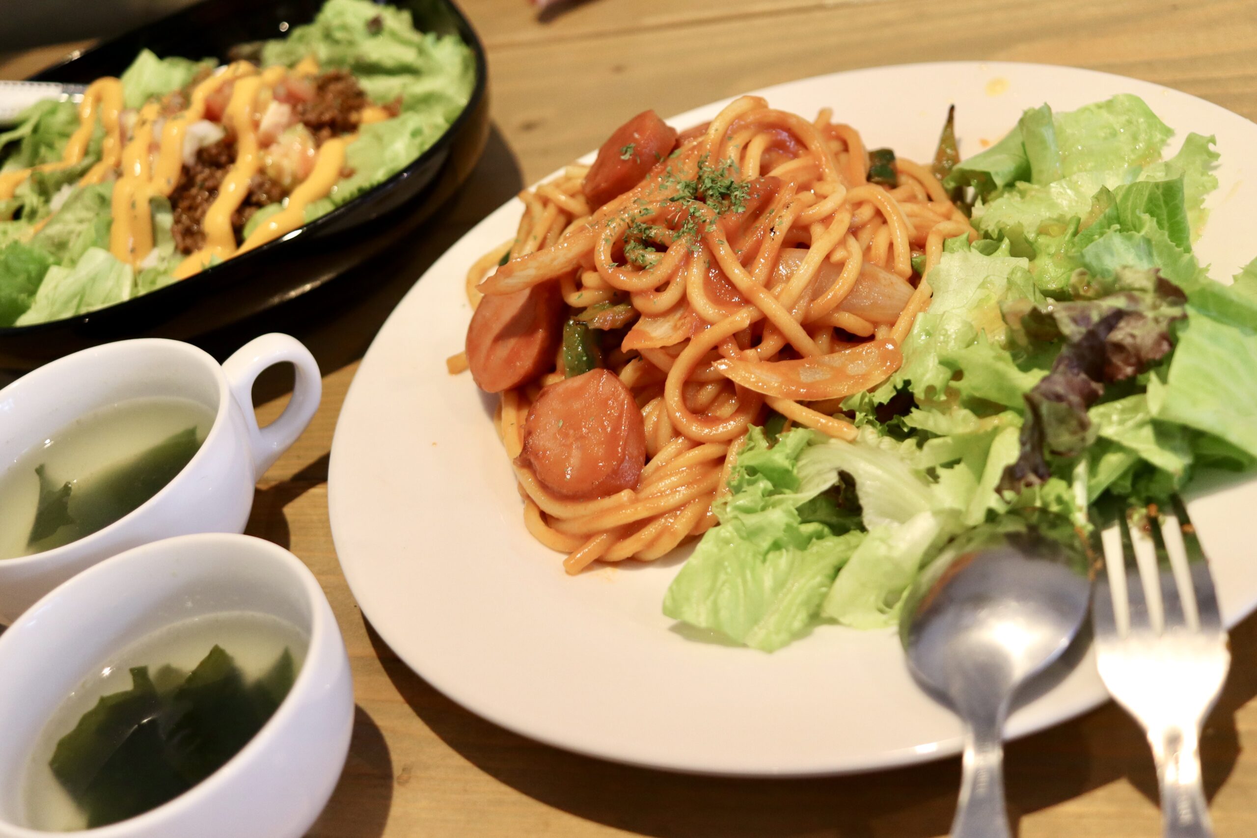 1,000円というお手頃価格でいただけるランチのタコライスやナポリタンに大満足。