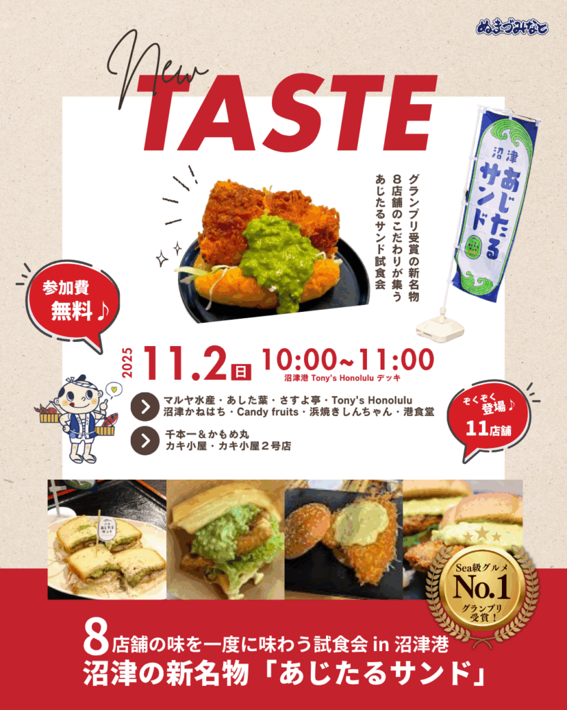 というわけで今回は、沼津港で11月2日(日)に開催されるご当地グルメ「沼津あじタルサンド」お披露目試食会の話題でした!