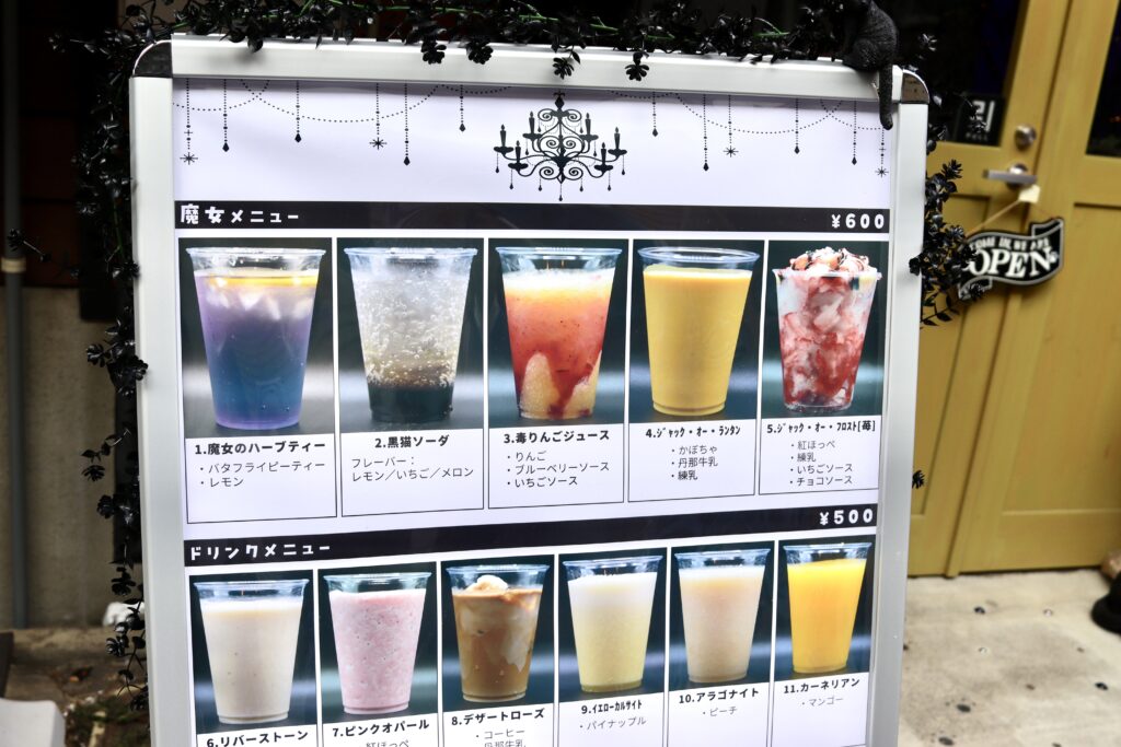 魔女のハーブティーや黒猫ソーダと言った世界観たっぷりのメニューから、静岡県産の苺紅ほっぺを使ったドリンクや地元産の丹那牛乳を使ったドリンクなど。