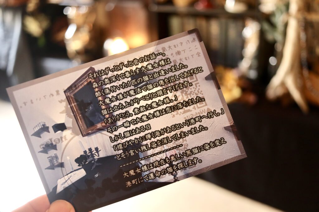 お店の内装やお店のチラシにも世界観がたっぷりと詰め込まれています。
