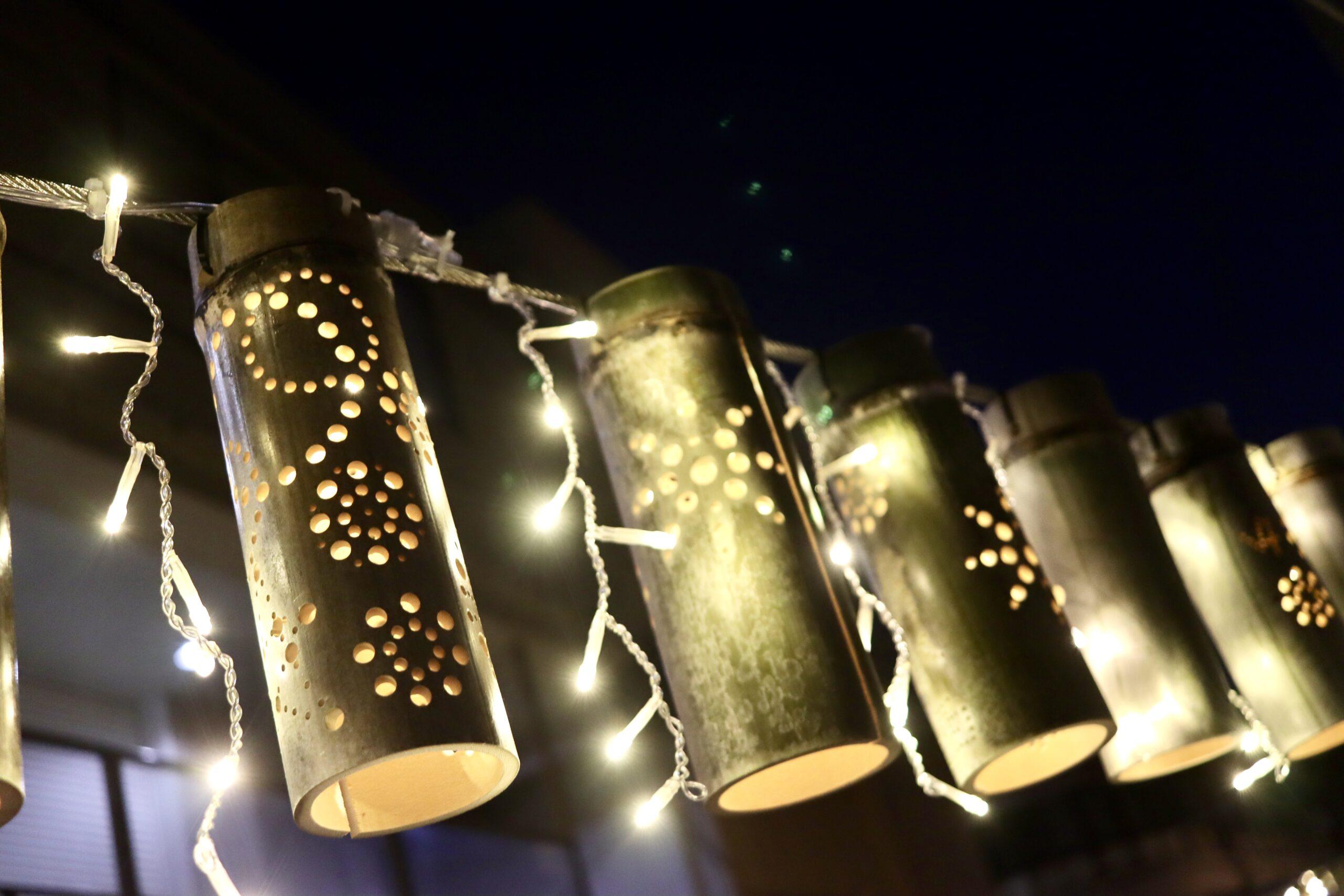 地域の子供たちと一緒に制作された竹灯籠には、街をよくしていきたいという思いがたくさん込められています。