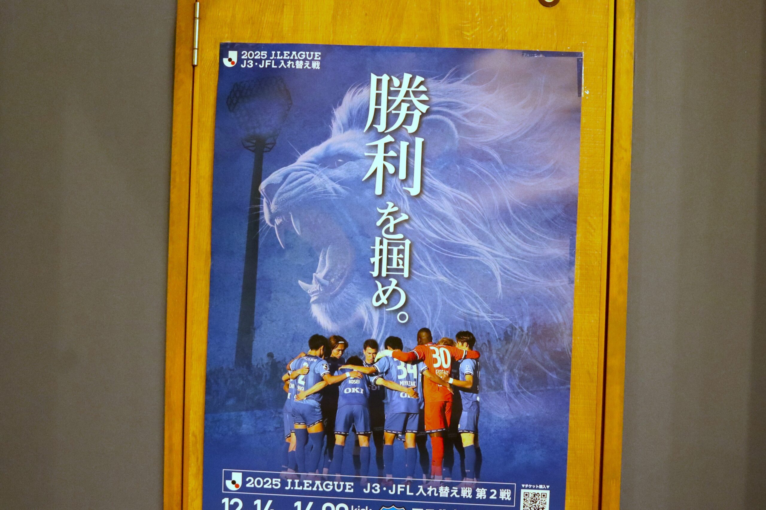 J3リーグよりも下部リーグであるJFL(日本フットボールリーグ)で2位につけた「レイラック滋賀FC」との、リーグ入れ替え戦に臨みます。