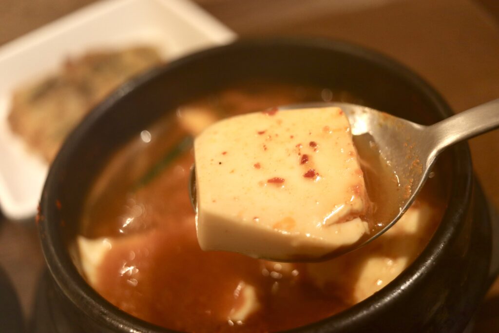 寒い時期にぴったりの熱々スンドゥブはアサリのうま味たっぷりでピリ辛味。