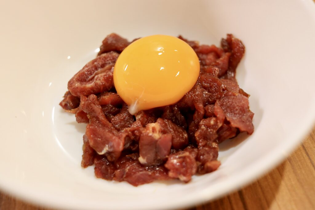 こちらはユッケ用の細切り馬肉。