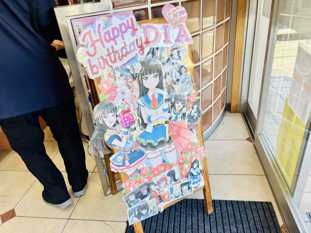 (お店の推しは店名の通り国木田花丸ちゃん、ですが1月1日のお誕生日に向けて黒澤ダイヤちゃんの装飾も)
