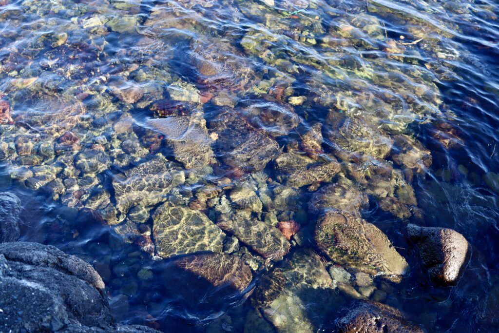 実際に海を眺めてみると、水底の岩や緑の苔の色まで、くっきりはっきり見ることができます。