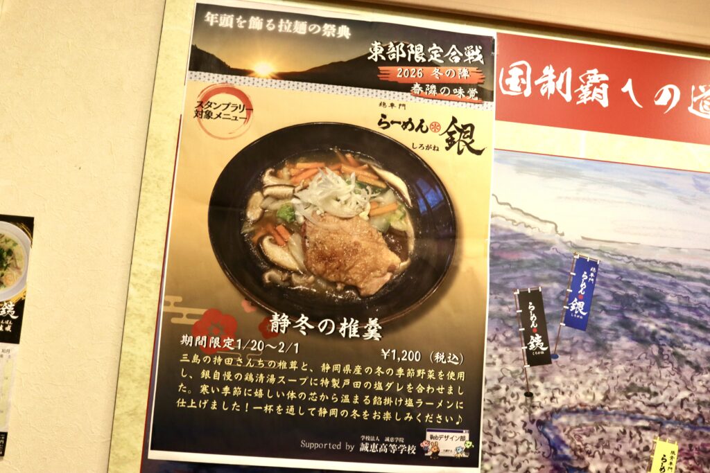 そんな「らーめん銀」さん、1月15日からスタートした静岡東部ラーメン店さん7店舗が参加する合同企画「東部限定合戦2026冬の陣」に参戦中。