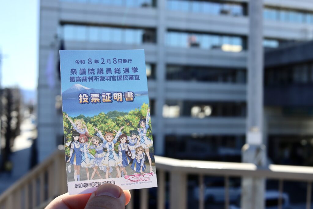 沼津市での「投票証明書」はラブライブ!サンシャイン!!とコラボした特別デザイン、ということでこれは話題になること間違いなしです。