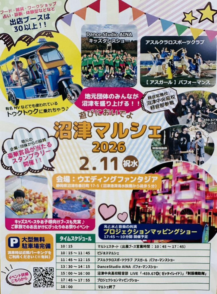 2月11日の祝日に沼津市春日町「ウエディングファンタジア」さんで「沼津マルシェ2026」が開催されます!