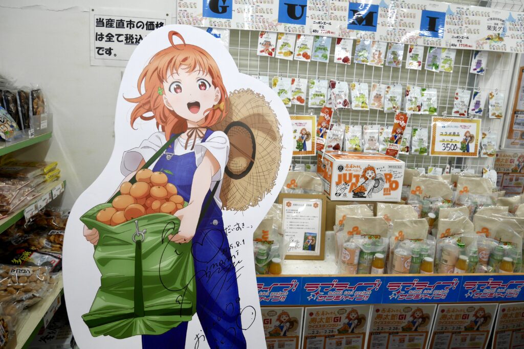 お店の中では「西浦みかん大使」でもある高海千歌ちゃんのスタンドPOPも飾られていました。