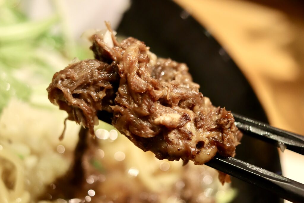 しっかり煮込まれたお肉はほろほろ食感、噛むほどに独特の風味とうま味がたっぷり感じられます。