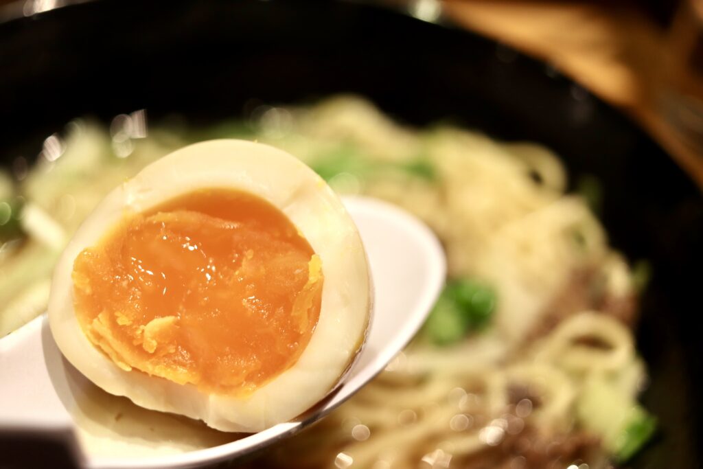 さらに豚チャーシューと燻製玉子の2種類から選べるトッピングも。(今回は燻製玉子をいただいてみました)