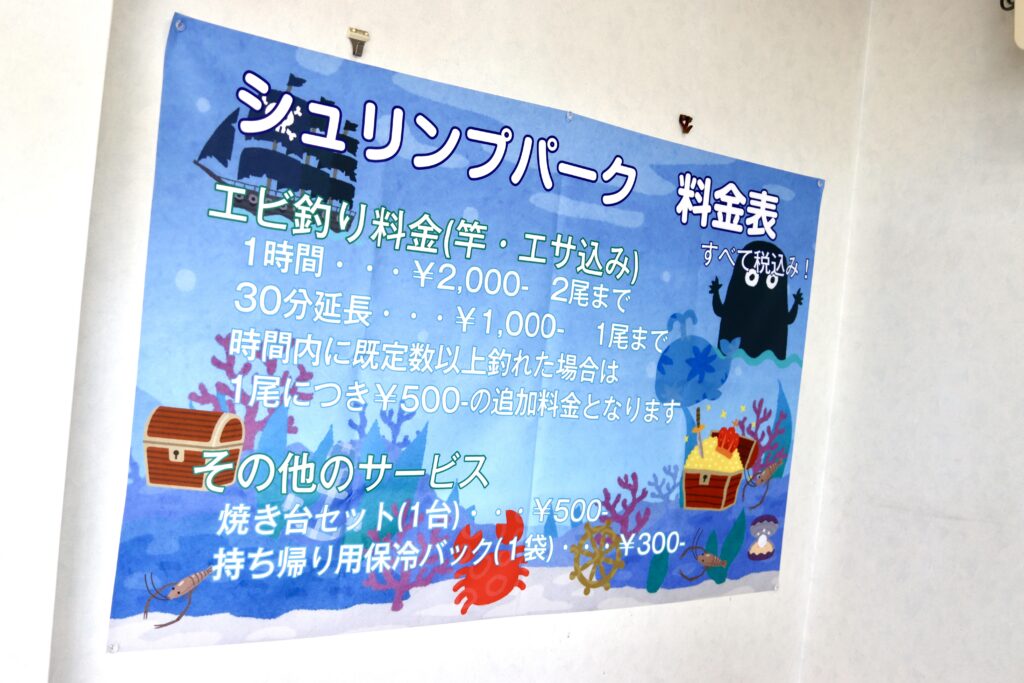 海老を2尾まで釣ることができて1時間2,000円、30分延長(1尾まで)でプラス1,000円。