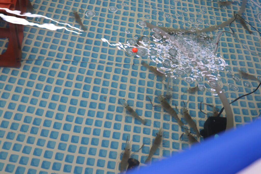 水槽の中には新鮮なオニテナガエビがたくさん!