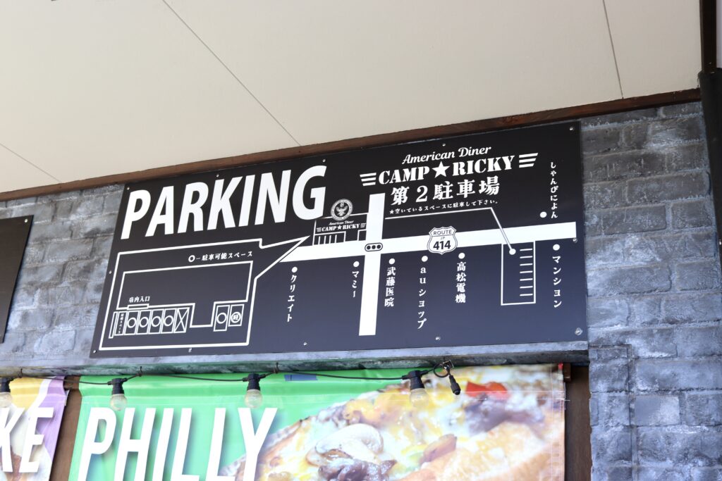 店舗前の駐車場のほか、少し離れたところにも第2駐車場があり、自家用車でも訪れやすい場所です。