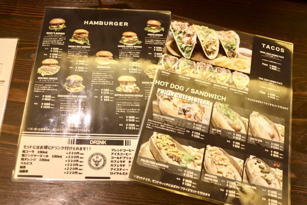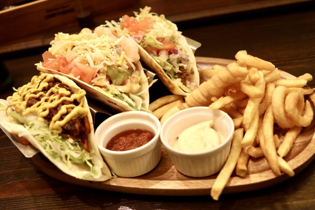 お店で提供されるのは、ボリューム満点のハンバーガーやタコス、サンドイッチといったお料理。