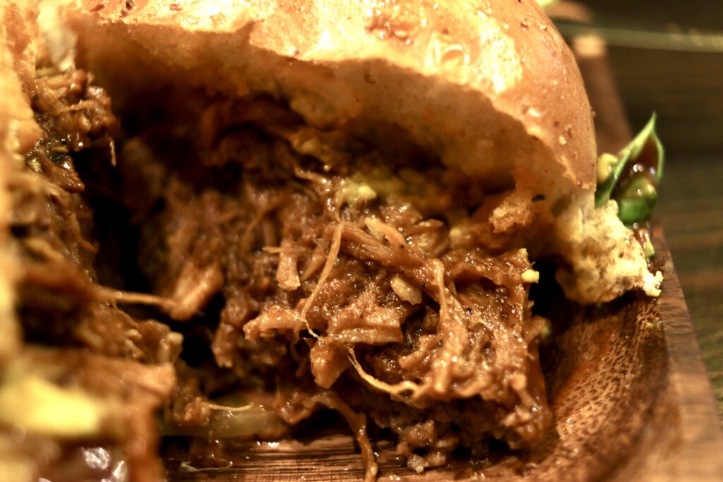 プルドポークは甘辛く濃厚なソースで味付けられていて、これがまたお肉によく合います!