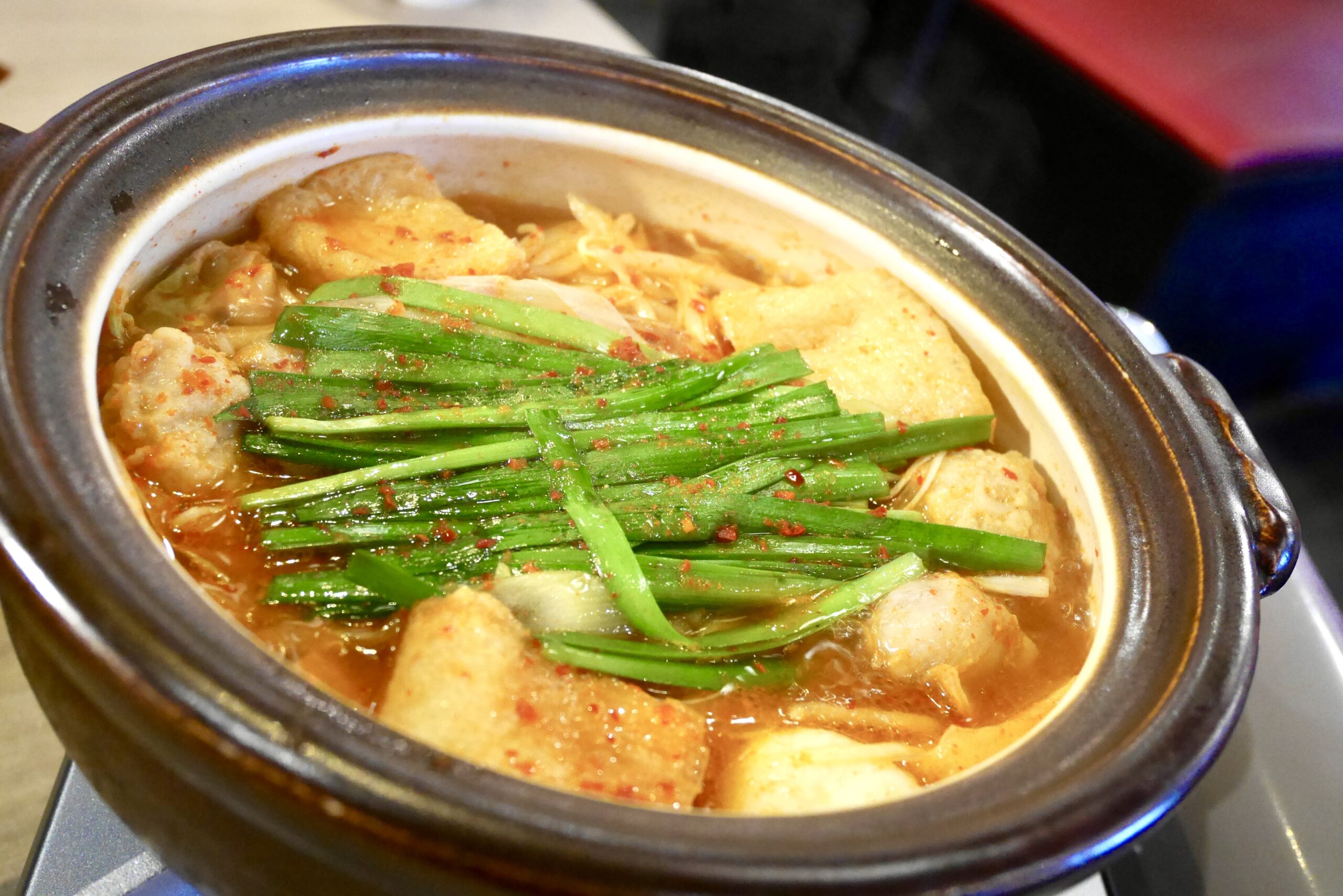 具材も白菜・もやし・にら・ねぎ・豚肉・モツ・油揚げ・肉だんご…と盛りだくさん!