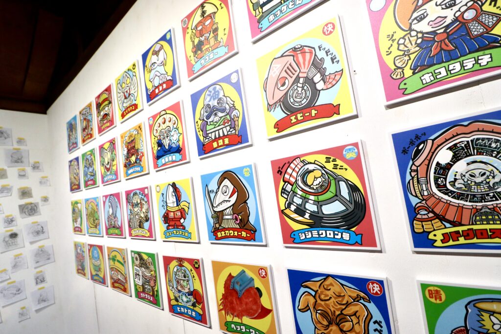2023年3月3日に発売され、企画のはじまりとなったお菓子「ヌーマ伝承サブレ」に封入されたシールのイラストが展示されている、というものです。