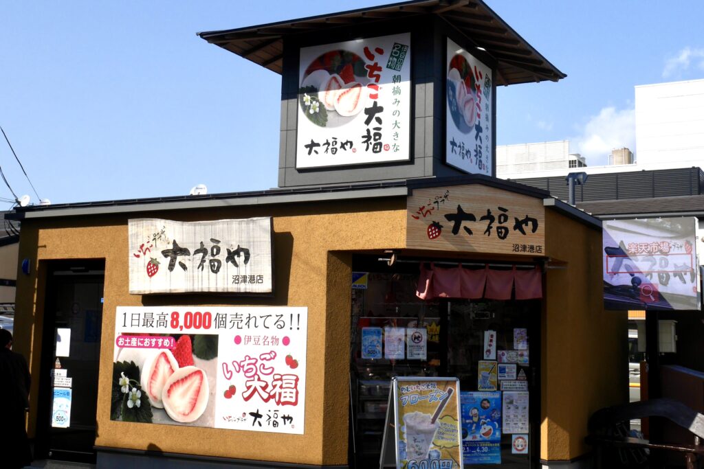 伊豆の国市にドライブイン「いちごプラザ」を構え、ここ沼津市や三島市、熱海市に出店する「いちごプラザ大福や」さん。