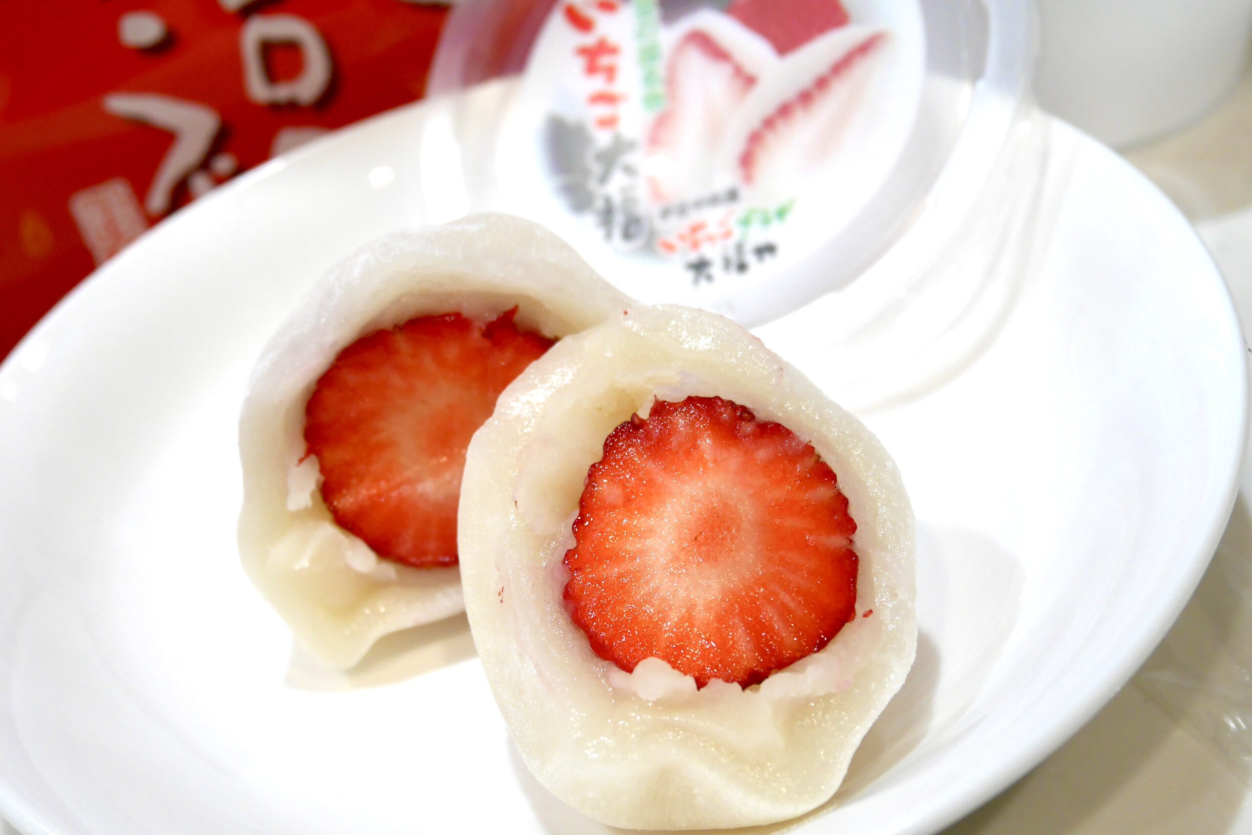 伊豆の契約農家さんから届いた新鮮な「紅ほっぺ」いちごを使用したといういちご大福。