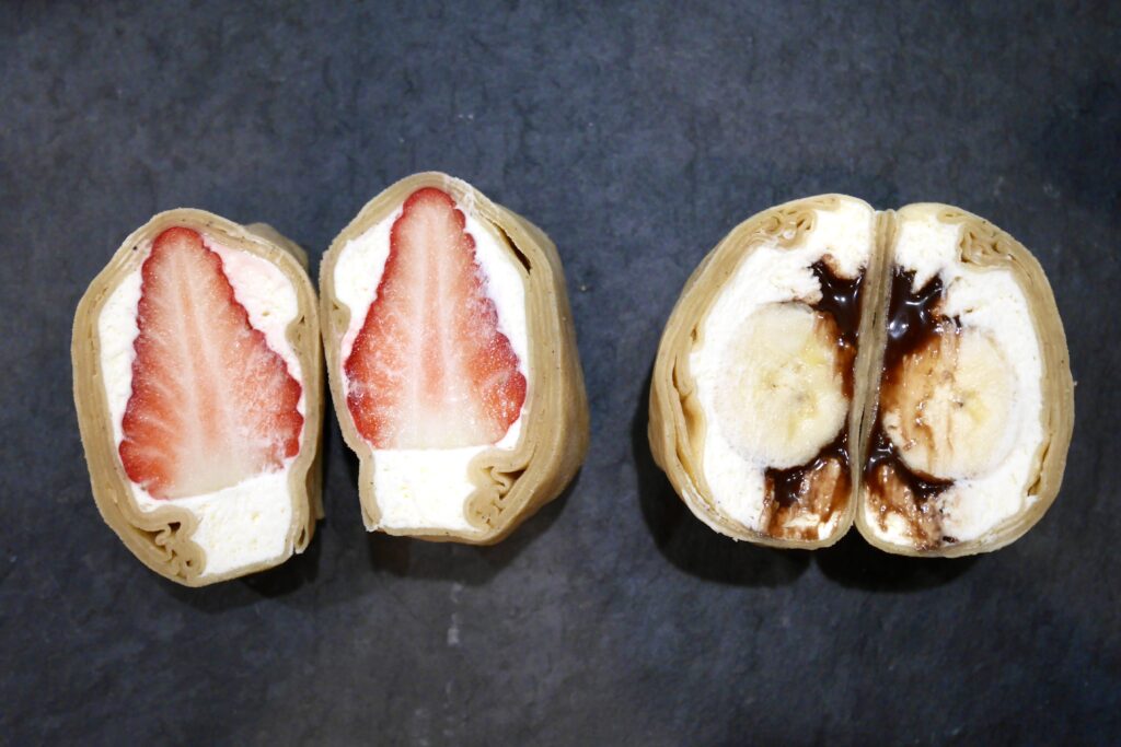 いちごは大福と同じく甘酸っぱくジューシー!白あんやお餅とも相性ピッタリですが、クレープや生クリームと一緒になっても美味しい!