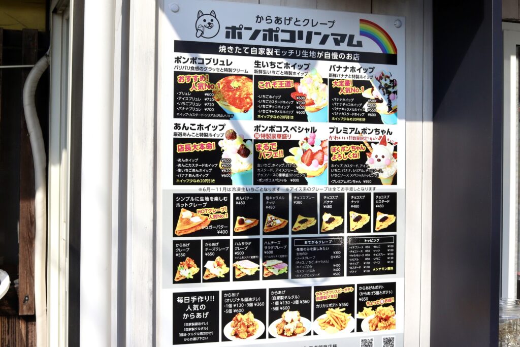 とくにクレープはメニューボードにずらりと並ぶラインナップの豊富さに圧倒されます。