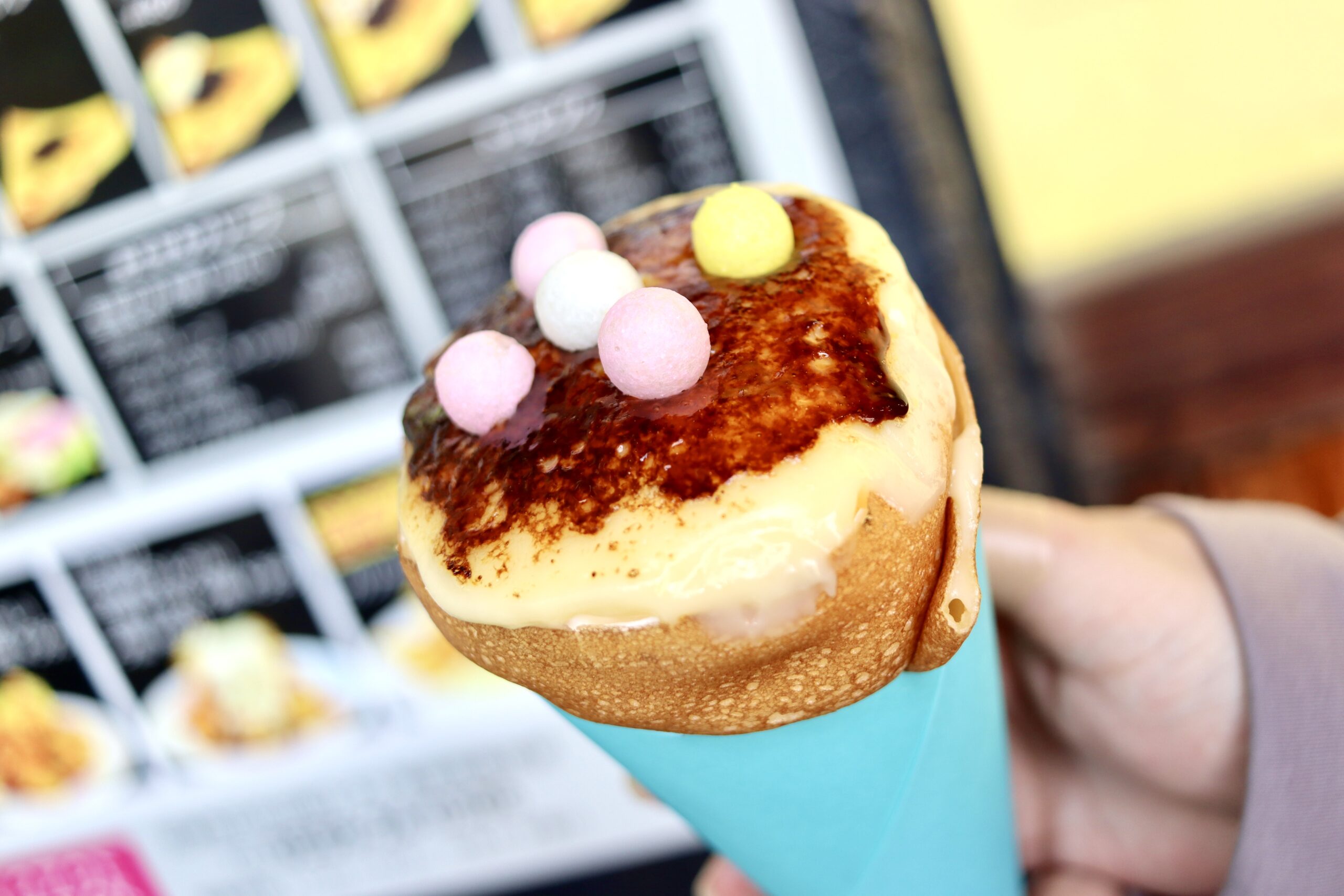 表面が香ばしく炙られたブリュレのクレープ、ずっしりと重みもあってお値段600円、というのは嬉しい!