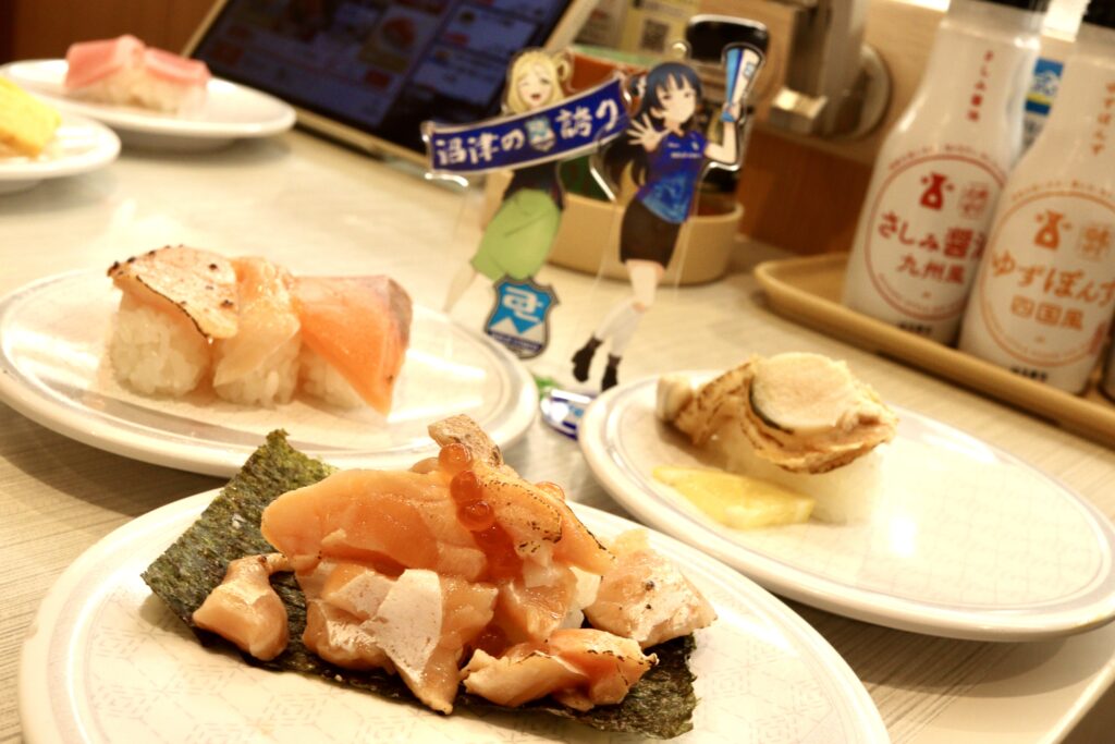 気軽に入れるチェーンのお寿司屋さん、店内にはざっと見ただけでも5組以上のアスルサポーターさんの姿が見えました。