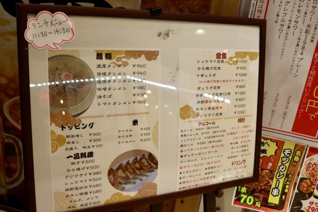- (タンメンも美味しいけど)唐揚げやシュウマイなどの定食メニューも豊富