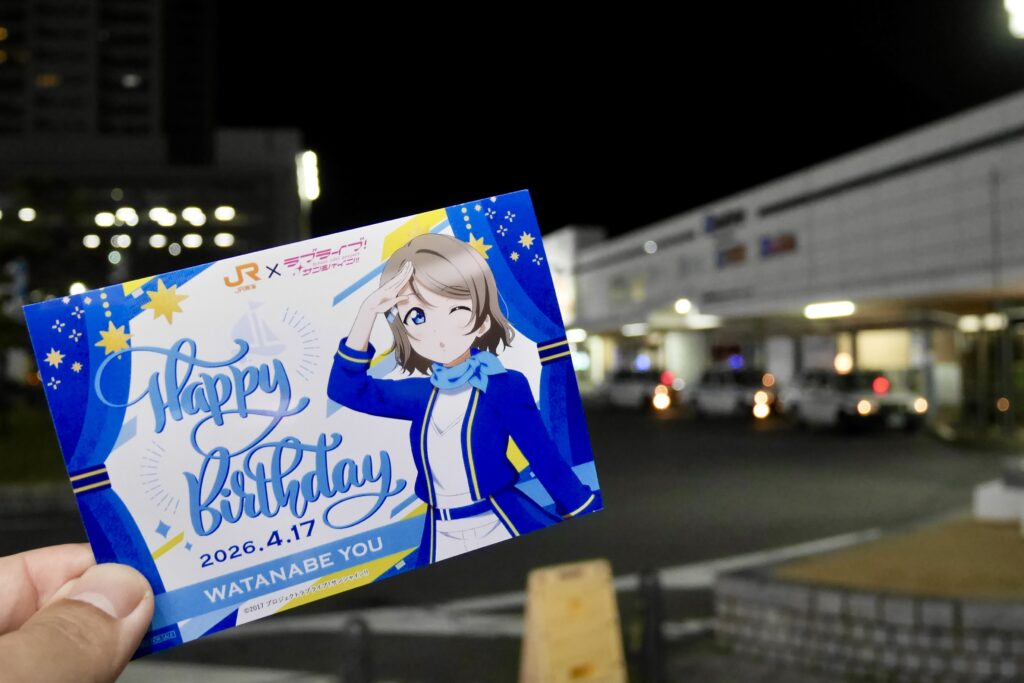 お誕生日期間に東海道新幹線に乗車して乗車証明を取得し、沼津駅で位置情報チェックインするともらえる特別なブロマイド。