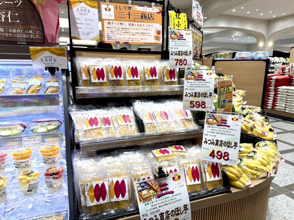 愛鷹山麓で育てられたさつまいもを使った「三十三商店(みつみしょうてん)」さんの干し芋もたくさん並んでいました。