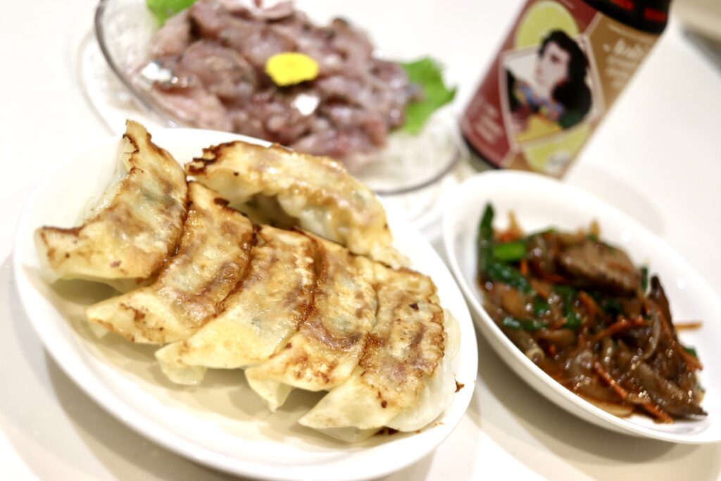 こちらはフードストアあおきさんの大きな名物のひとつ、焼き餃子!