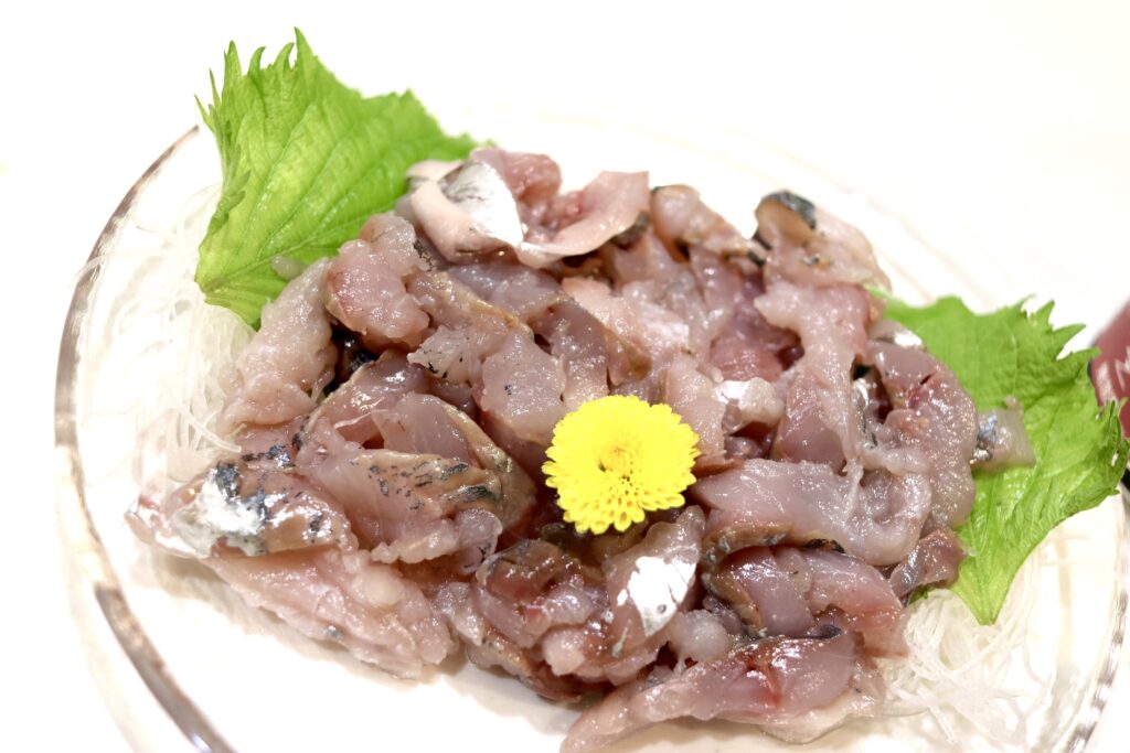 新鮮な地場産のアジは肉厚でプリプリとした食感、舌の上でとろける脂と臭みのない上品なうま味がこれまたたまらない美味しさ!